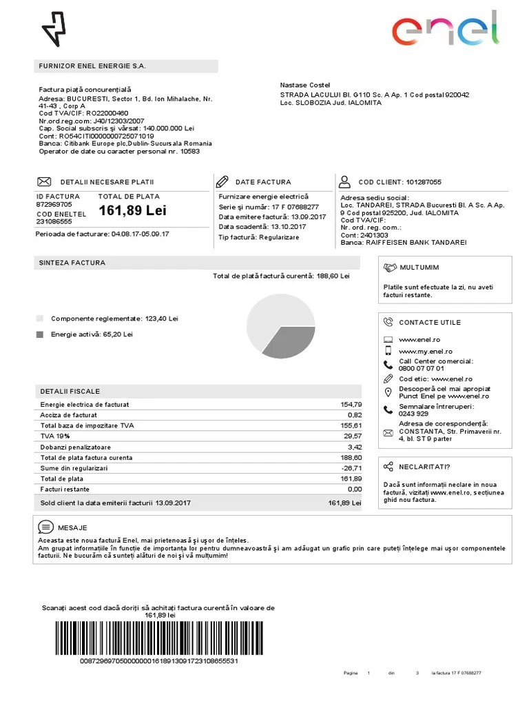 Cod Eneltel Pe Factura - Plata facturii Enel la PoÈtÄ va costa 2.5 lei. *valoarea reprezintă o simulare de calcul a celor 36 de tranșe pentru modelul. Oferta se adresează clienților rezidențiali și este valabilă în limita stocului disponibil.